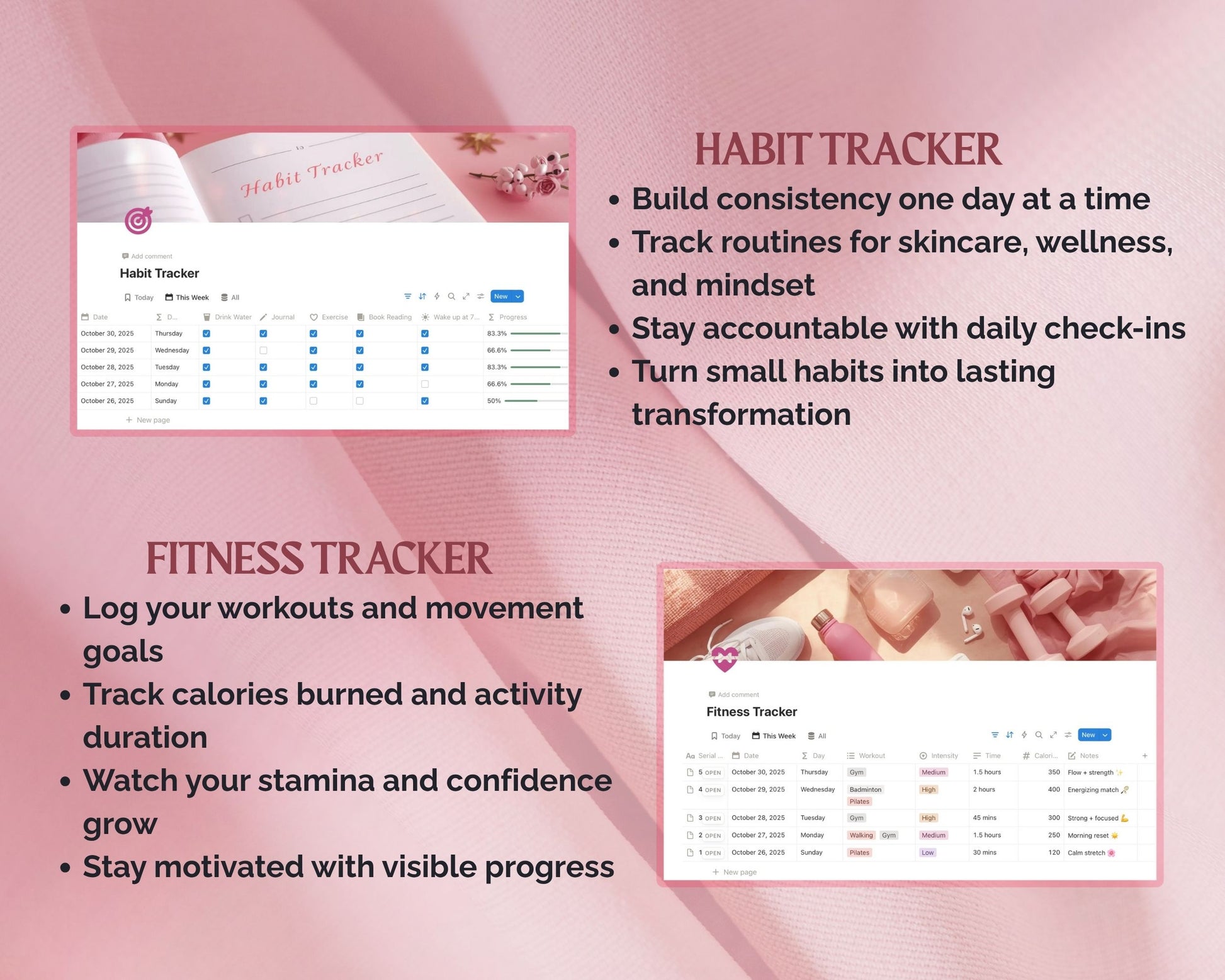 A complete Notion template designed to help you track habits, routines, goals, and personal growth — all in one organized dashboard.